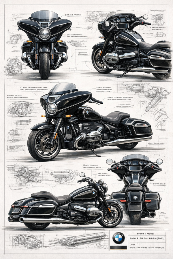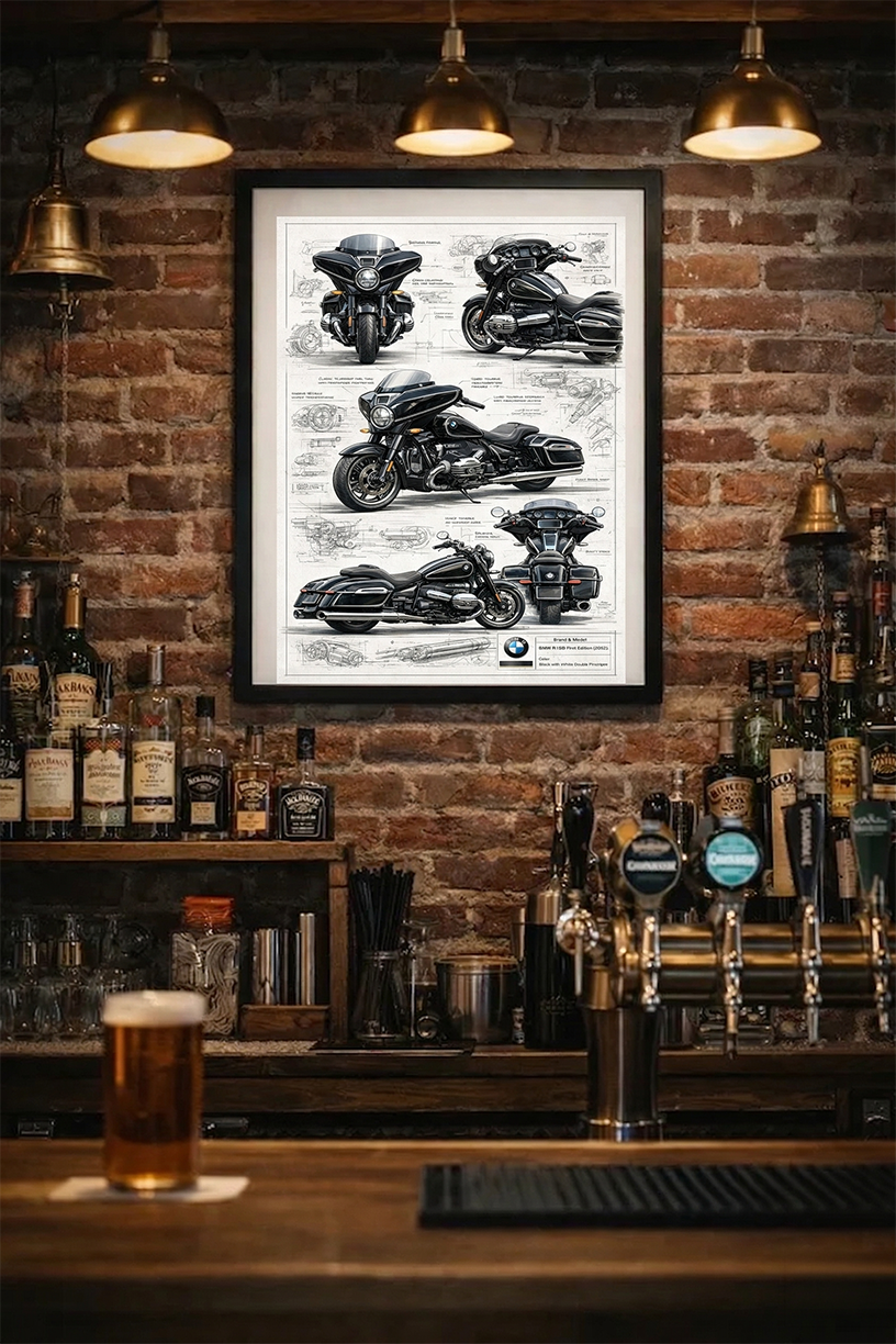 Professioneel geprint op A2 formaat en geleverd in een imposante 52×72 cm lijst met passe-partout. De ruime witte rand geeft het ontwerp ruimte om te ademen en zet jouw motor echt centraal. Direct ophangklaar, perfect afgewerkt.